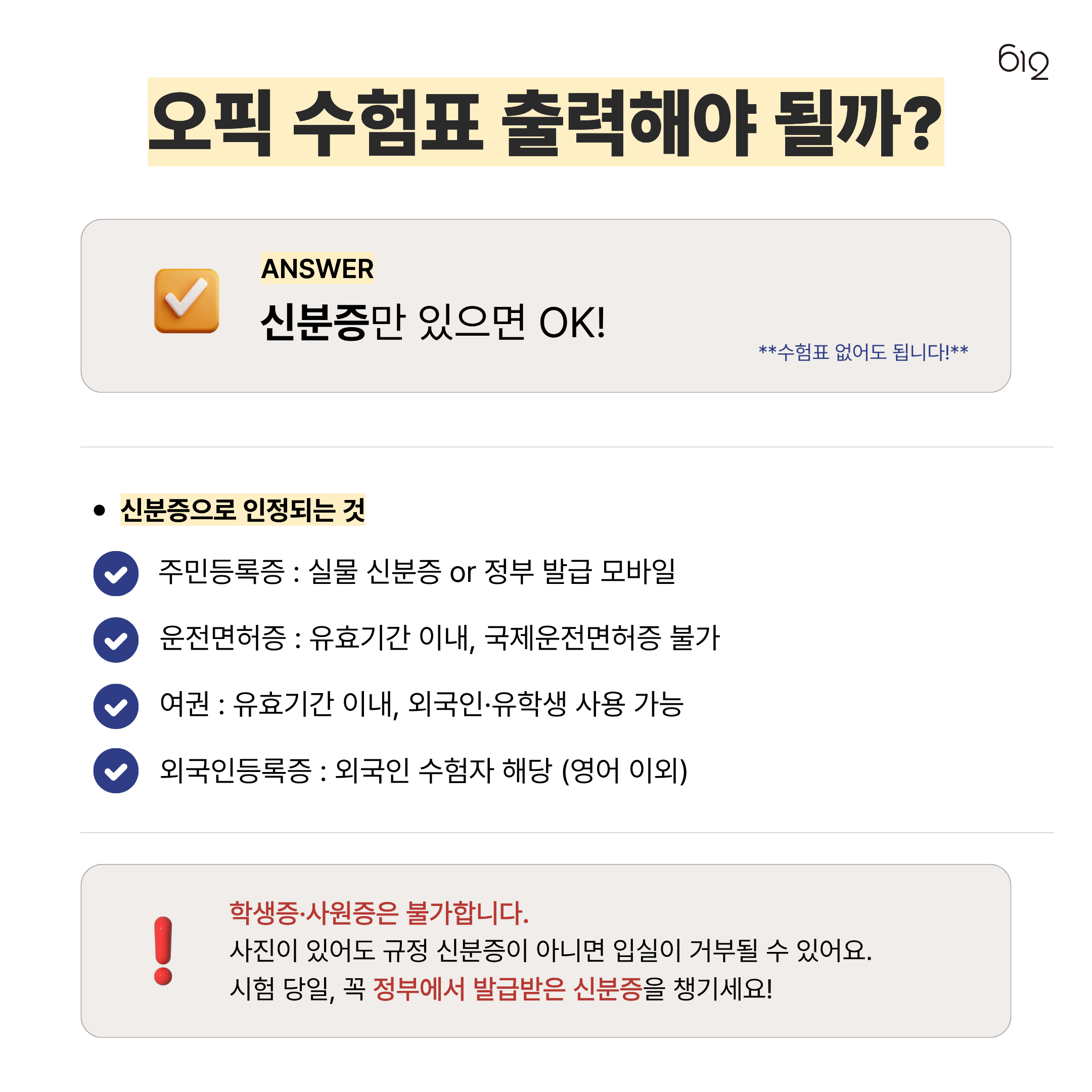 오픽 시험에서 가장 중요한 준비물은 단 하나. 규정 신분증입니다.